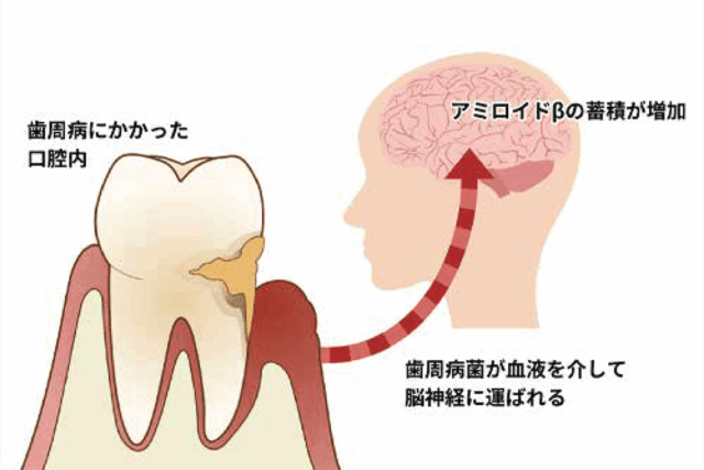 「アルツハイマー型認知症」は、アミロイドβというたんぱく質が脳内に蓄積することで発症します。このアミロイドβが蓄積する原因として、歯周病があげられます。