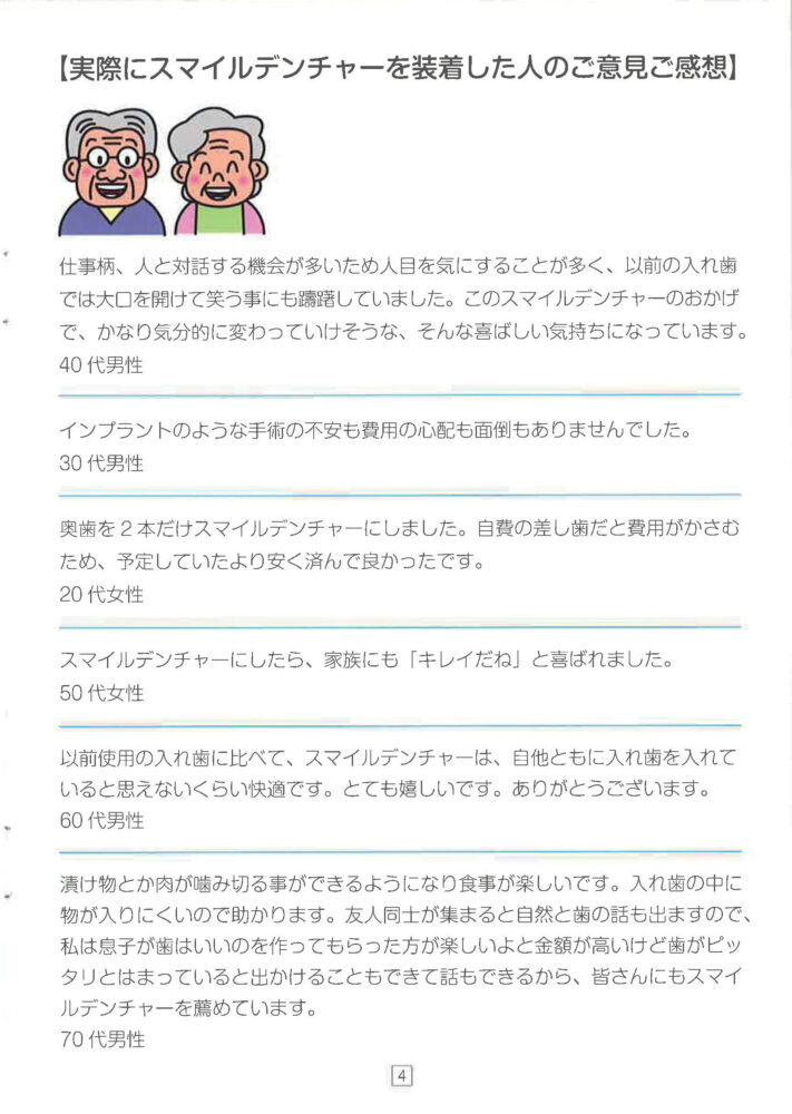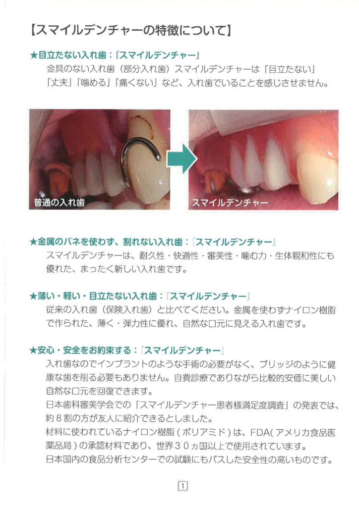 スマイルデンチャーとは、金具のない入れ歯(部分入れ歯)のことです。詳しくはこちらをご覧ください。